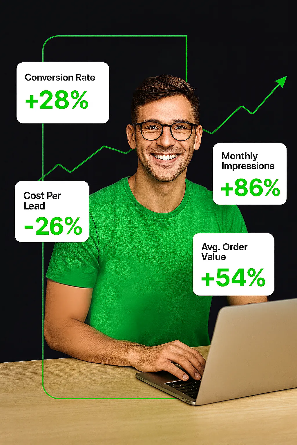 Most clients see improvements within 14–30 days. Initial optimizations often yield quick wins, while our creative and strategic improvements compound over time. However, new campaigns typically become fully optimized in 90–120 days.